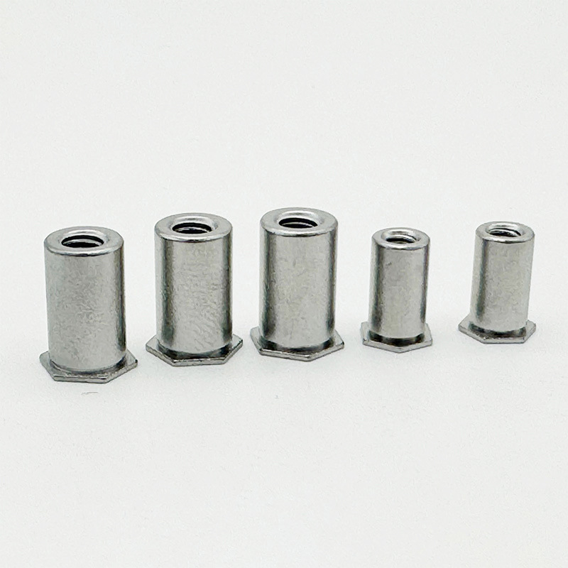 Kor dəlik düz başlısı hexagon Riveted qoz nazik materiallar üçün uyğun bir bərkidicidir. Güclü və davamlıdır və ip taxmaq asan deyil. Asan quraşdırma üçün bir hex forması var, qapalı bir boşluq və bir qoz gövdəsi olan düz sayğac başı var. Quraşdırdığınız zaman, qoz materialın üzərinə kilidləmək üçün mexaniki olaraq (perçin kimi) deformasiya edir.